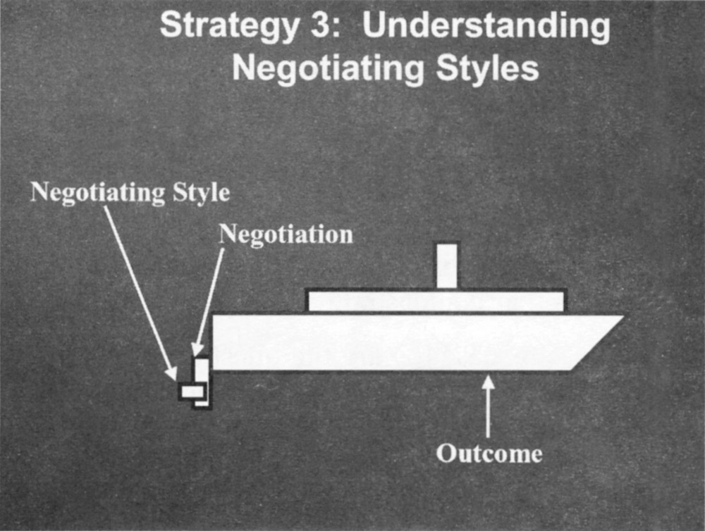 Brad asked 10 people what they most liked about his presentation style and five factors came back. One of the most interesting was the feedback he received from Jonathan. Jonathan said that he was very impressed with the way Brad used analogies, that is making something more understandable by relating it to something that is already well understood. The example that Jonathan related was using a trim tab (Figure 7-4) to help people better understand the leverage that can be gained from better understanding one's negotiating style.