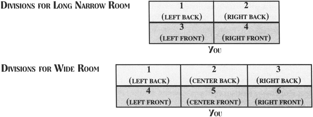 Large Group: Be aware of your visual impact; when communicating, your eyes are your most important feature. Use broad gestures and strong movement. Mentally divide room into sections, and try to cover all areas equally.